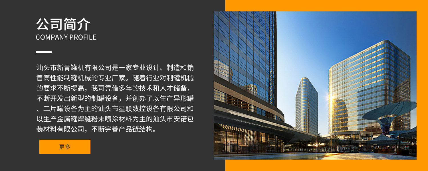 • 汕頭市新青罐機(jī)有限公司是一家專(zhuān)業(yè)設(shè)計(jì)、制造和銷(xiāo)售高性能制罐機(jī)械的專(zhuān)業(yè)廠(chǎng)家。